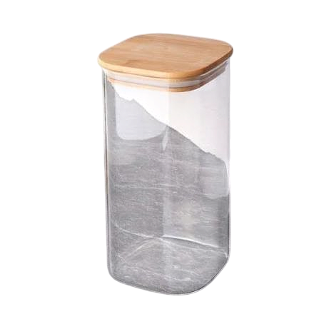 Square Glass Storage Jar with Airtight Bamboo Lid
